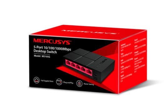 -Contenido de paquete: Switch Sobremesa 5-Puertos 10/100/1000Mbps MS105G, Adaptador corriente, Guía de Instalación Rapida