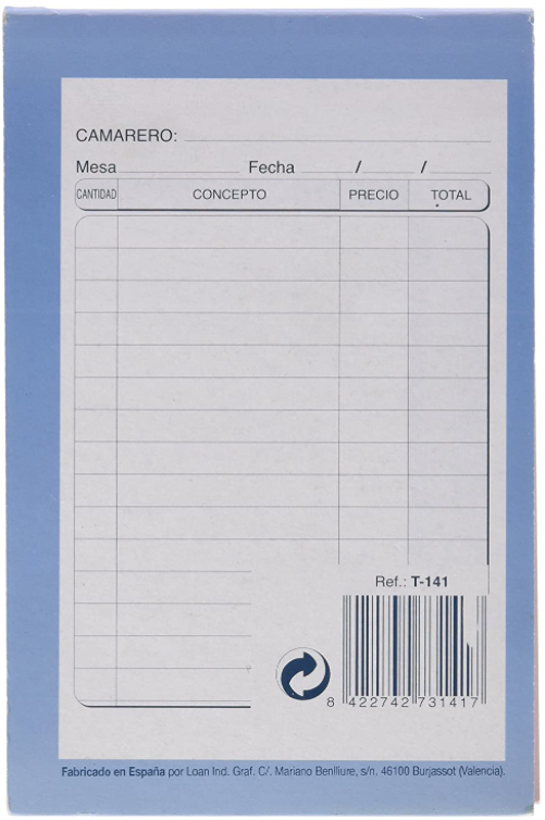 Talonario CAMAREROS - Loan T-141 Triplicado Autocopiante Especial Bolsillo