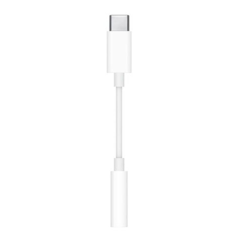 - Conversor USB-C a AUDIO, con conector USB-C en un extremo y JACK 3.5 4 pines hembra en el otro.