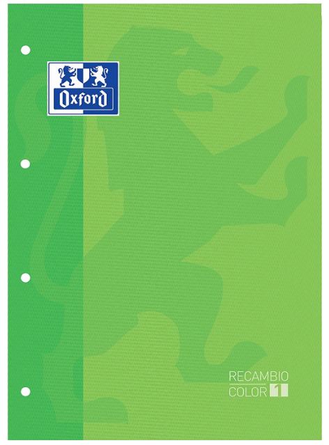 Oxford, Hojas Cuadrículadas A4 Perforadas. Recambio Archivador, 80 Hojas, Color Verde, Cuadrícula 5x5.