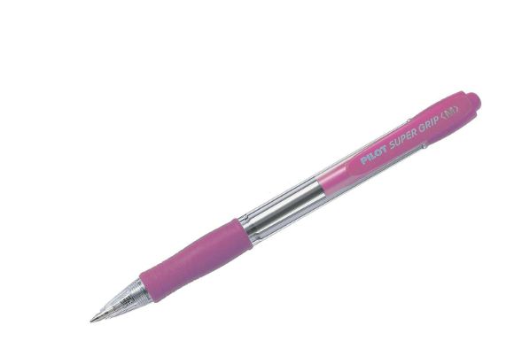 Pilot Boligrafo de Bola Retractil SuperGrip - Punta Redonda 1.0mm - Trazo 0.27mm - Tinta de Aceite - Grip Ergonomico - Color Rosa