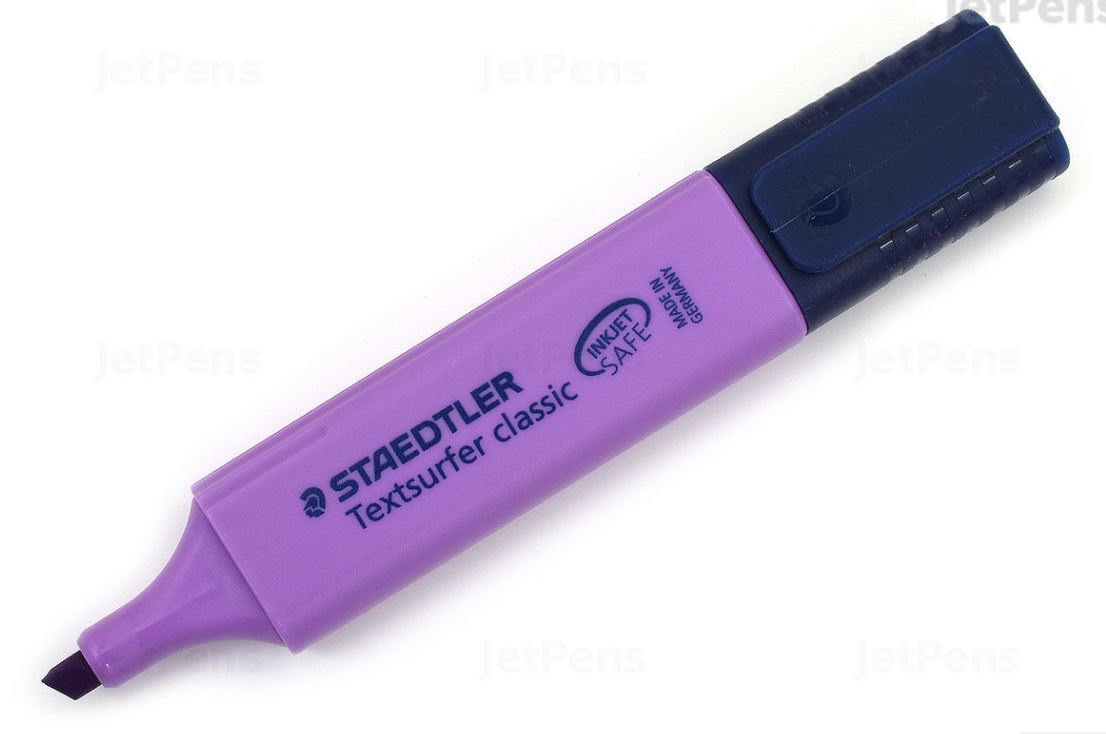El resaltador Staedtler Textsurfer Classic está diseñado con un gran depósito de tinta para un mayor rendimiento de resaltado. La tinta de pigmento de secado rápido es resistente a la luz y no mancha la impresión de inyección de tinta ni la mayoría de las tintas escritas a mano. Incluso cuenta con un sistema automático de ecualización de presión que evita que el resaltador se filtre a bordo de un avión. Los colores púrpura y turquesa son a prueba de copias y mantendrán su texto visible en las fotocopias.