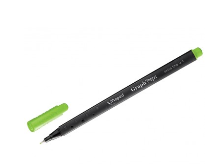 Rotulador de punta extra fina 0.4 de la marca Maped Graph'Peps. Modelo ergonómico con forma de prisma para facilitar su agarre y posterior escritura. Tacto suave y antideslizante. Color verde claro. Productos en la misma categoría