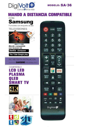 Digivolt mando a distancia compatible con Samsung, no necesita instalacion Funciona como tu mando original No necesita configuracion inicial Inserta las baterias u listo para usar. Productos en la misma categoría