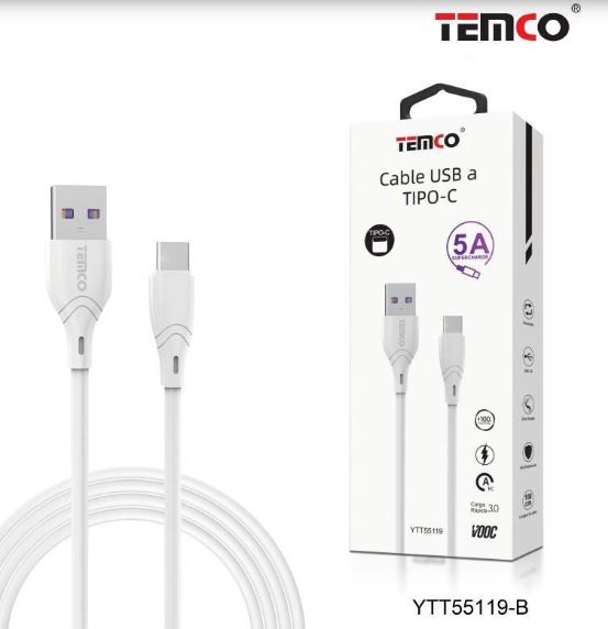 Cable SuperCharge 5A 1m Tipo C Blanco