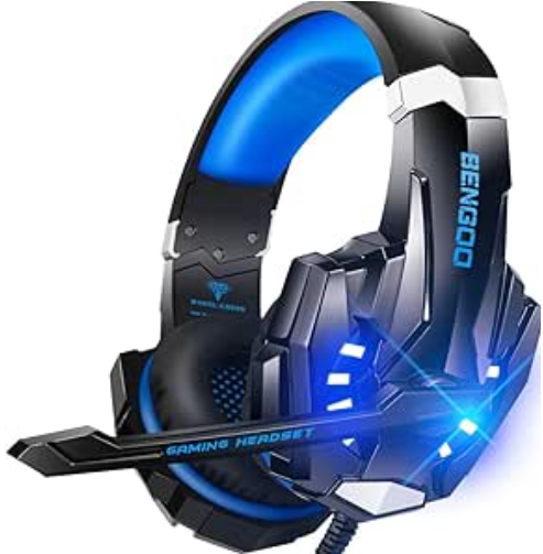Bengoo G9000 Auriculares con Cable para Juegos, Auriculares estéreo con Sonido Envolvente y Graves para PS5, PS4 PC, Mac Nintendo, Xbox One con micrófono, luz LED, cancelación de Ruido (Azul)
