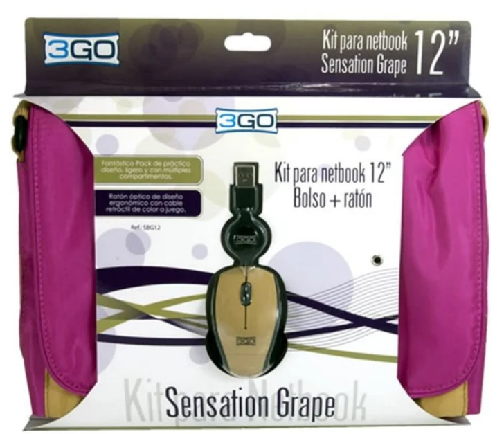 3Go Sensation Pack Bolsa Morada hasta 12" Ratón USB
