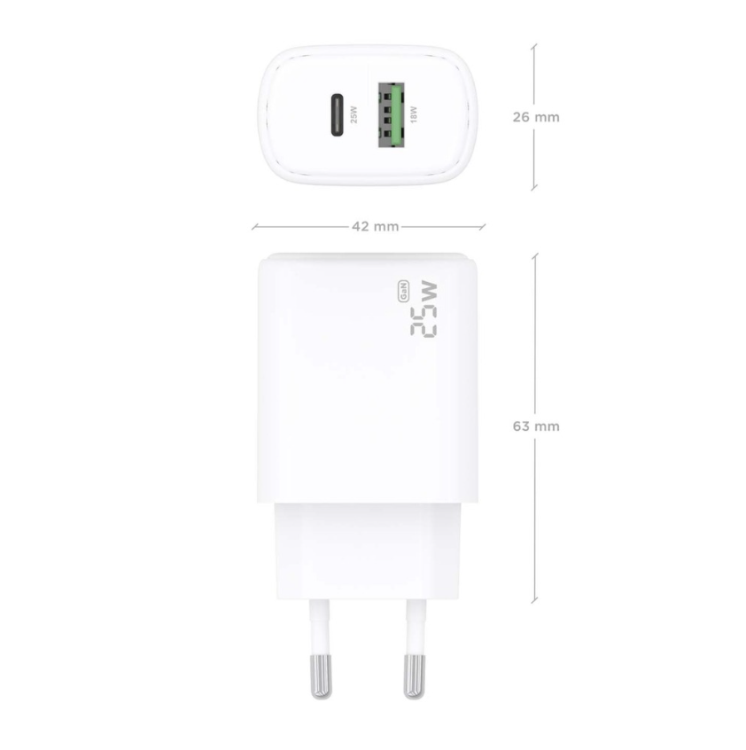 > Cargador USB-C 25W para cargar portátiles, móviles, cámaras y tablets etc. Diseño muy elegante, moderno y práctico.