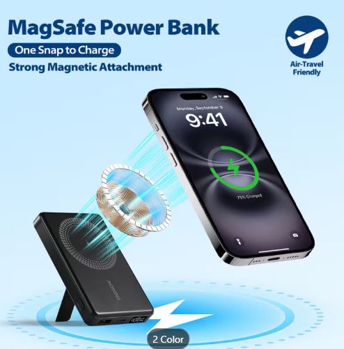 ENEGON 10000mAh Cargador Portátil Inalámbrico Plegable Magnético con Soporte y Pantalla LED Compatible con iPhone 17/16/15 Pro/14/13/12 Ideal para Viajes y Desplazamientos Diarios