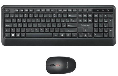 El combo de teclado y mouse inalámbricos es una solución práctica y moderna para usuarios que buscan productividad sin cables.Con un diseño delgado, liviano y minimalista, este conjunto combina rendimiento, confiabilidad y comodidad, adaptándose perfectamente tanto a entornos profesionales como domésticos.El teclado inalámbrico, con distribución en español (ES) y 106 teclas grabadas con láser, garantiza una escritura precisa y duradera. Su mecanismo de membrana ofrece una pulsación silenciosa y cómoda, ideal para largas sesiones de trabajo.El ratón óptico inalámbrico incluye un sensor ajustable de 1000/1200/1600 DPI, lo que permite ajustar la velocidad del cursor para cada tarea. Su forma ergonómica y su acabado en negro y rojo le confieren un aspecto elegante y profesional.Ambos dispositivos se conectan a través de un receptor USB 2.4G con un alcance de hasta 8 metros, lo que garantiza una conexión inalámbrica estable y sin demoras.También son compatibles con Windows, macOS y Linux, lo que ofrece una flexibilidad total entre diferentes sistemas.P/N:UK50547 · EAN:8436617921612 · GTIN-14:18436617921619![]() ![]() CONEXIÓN INALÁMBRICA CONFIABLEConecte su teclado y ratón al instante con la sencilla función plug-and-play. Disfrute de una conexión inalámbrica estable y sin interferencias con un alcance de hasta 8 metros, gracias a la tecnología de 2,4 GHz. Diseñada para la eficiencia y la flexibilidad, esta configuración inalámbrica garantiza un rendimiento impecable en cualquier espacio de trabajo, ideal para oficinas, profesionales y entornos empresariales. TECLADO COMPACTOEste teclado es un 36 % más pequeño que los modelos estándar, pero conserva todas las teclas esenciales, incluidas las numéricas y de función. Disfrute de una funcionalidad completa en un diseño compacto que ahorra valioso espacio en el escritorio, manteniendo la misma comodidad y rendimiento para el uso profesional diario. RATÓN AMBIDIESTROEl ratón cuenta con un diseño ambidiestro y portátil que garantiza un movimiento fluido y preciso. Compacto, inalámbrico y versátil, se adapta perfectamente a cualquier espacio de trabajo o entorno profesional. *Funciona con una pila AA (no incluida). Productos en la misma categoría