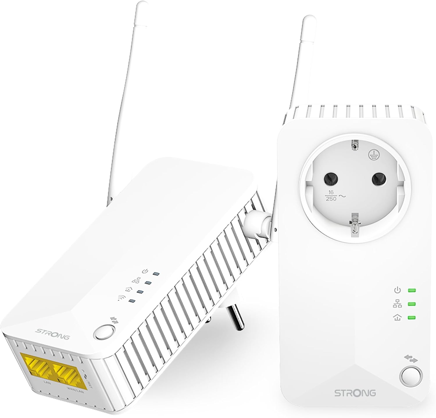 STRONG - Kit Powerline - Doble Toma PLC - PLC 600 Mbps + PLC WiFi 300 Mbps - Compatible Box/Router - 1 Puerto Ethernet + Enchufe Filtrado - Instalación Plug & Play - Alta Velocidad - Blanco